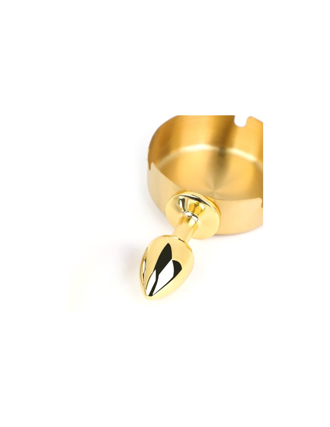 BDSMasterPlug conique, d'une longueur insérable de 6 cm et d'une largeur de 1 à 2.5 cm. Cendrier de 8 cm de long pour une hauteur de 2.8 cm. En métal.