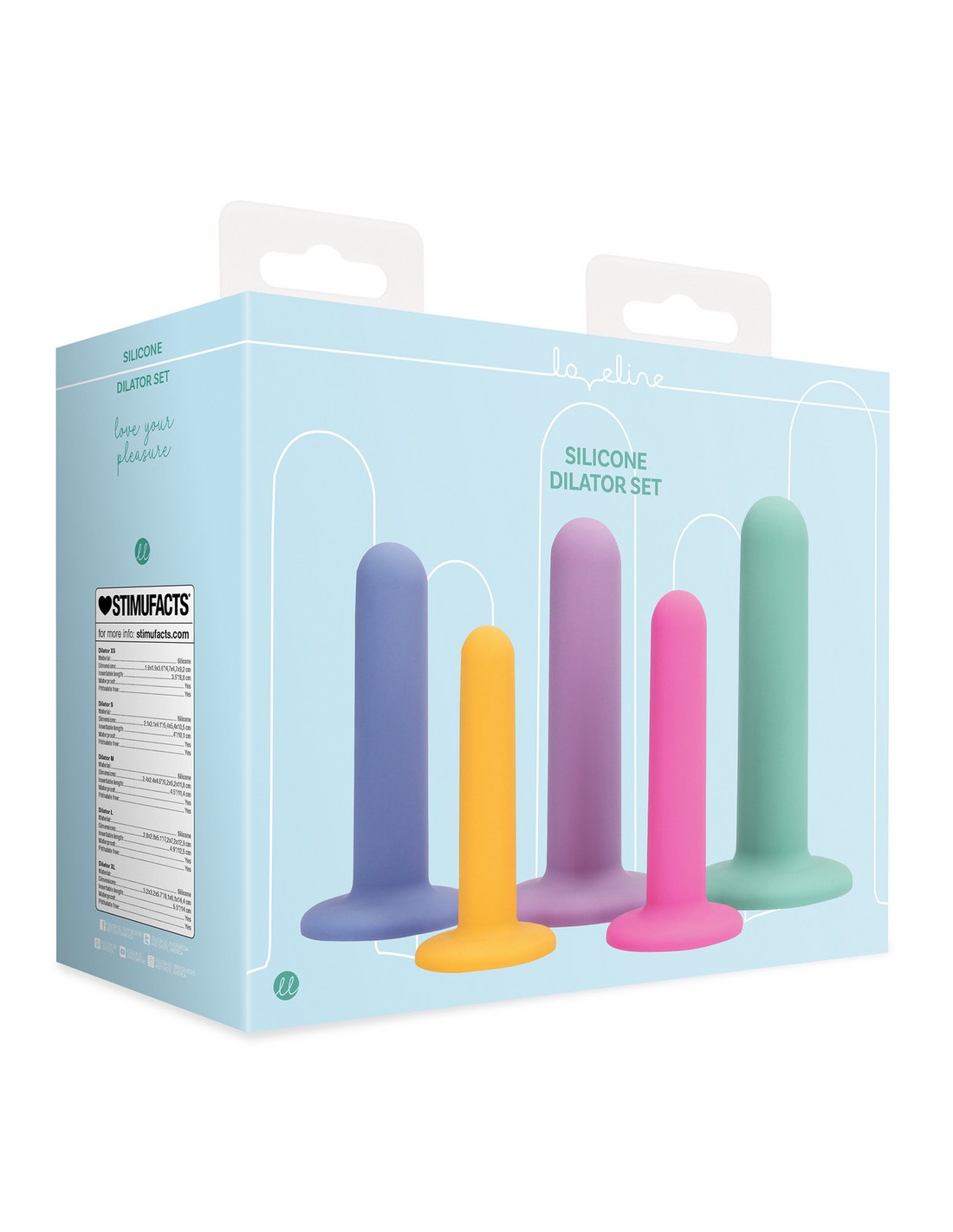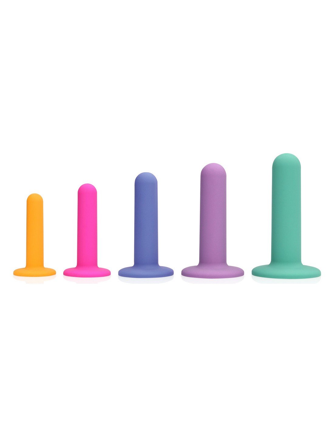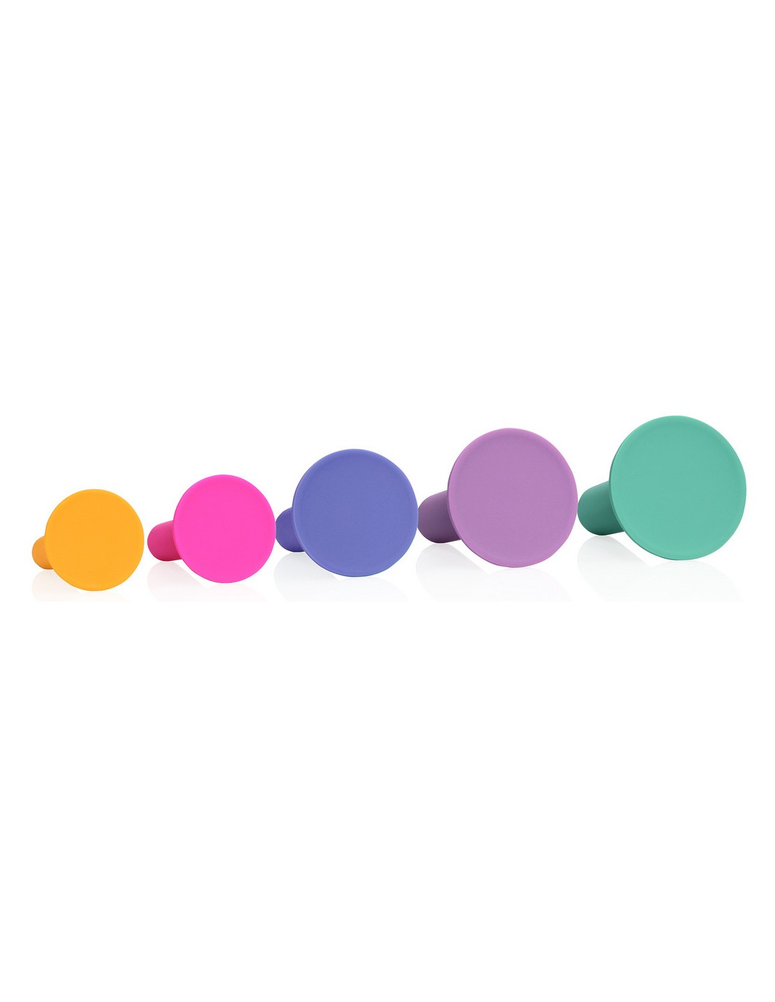 Loveline5 plugs d'entraînementtaille XS (jaune) : longueur insérable de 9 cm, largeur de 2 à 2.1 cmtaille S (rose) : longueur insérable de 10 cm, largeur de 2.3 à 2.4 cmtaille M (bleu) : longueur insérable de 11 cm, largeur de 2.7 à 2.8 cmtaille L (violet) : longueur insérable de 12 cm, largeur de 3.2 à 3.3 cmtaille XL (turquoise) : longueur insérable de 13 cm, largeur de 3.5 à 3.6 cmen silicone, avec base ventouse