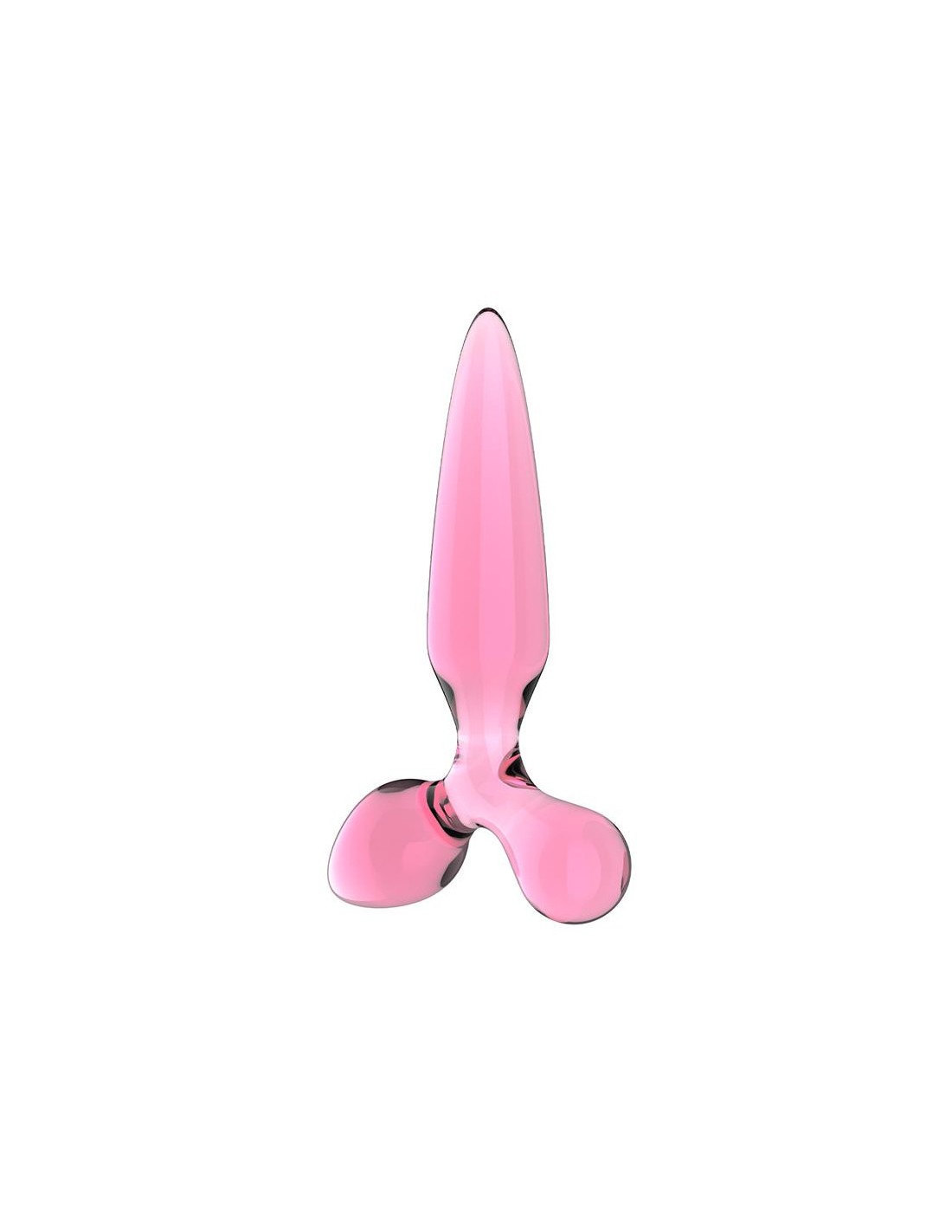 Plug avec 3 extrémités, de forme différente. Tige : longueur insérable de 14 cm et largeur de 1.5 à 3.2 cmConique : longueur insérable de 7.5 cm et largeur de 1.5 à 3.8 cmBoule : longueur insérable de 5 cm et largeur de 2.6 cmEn verre.