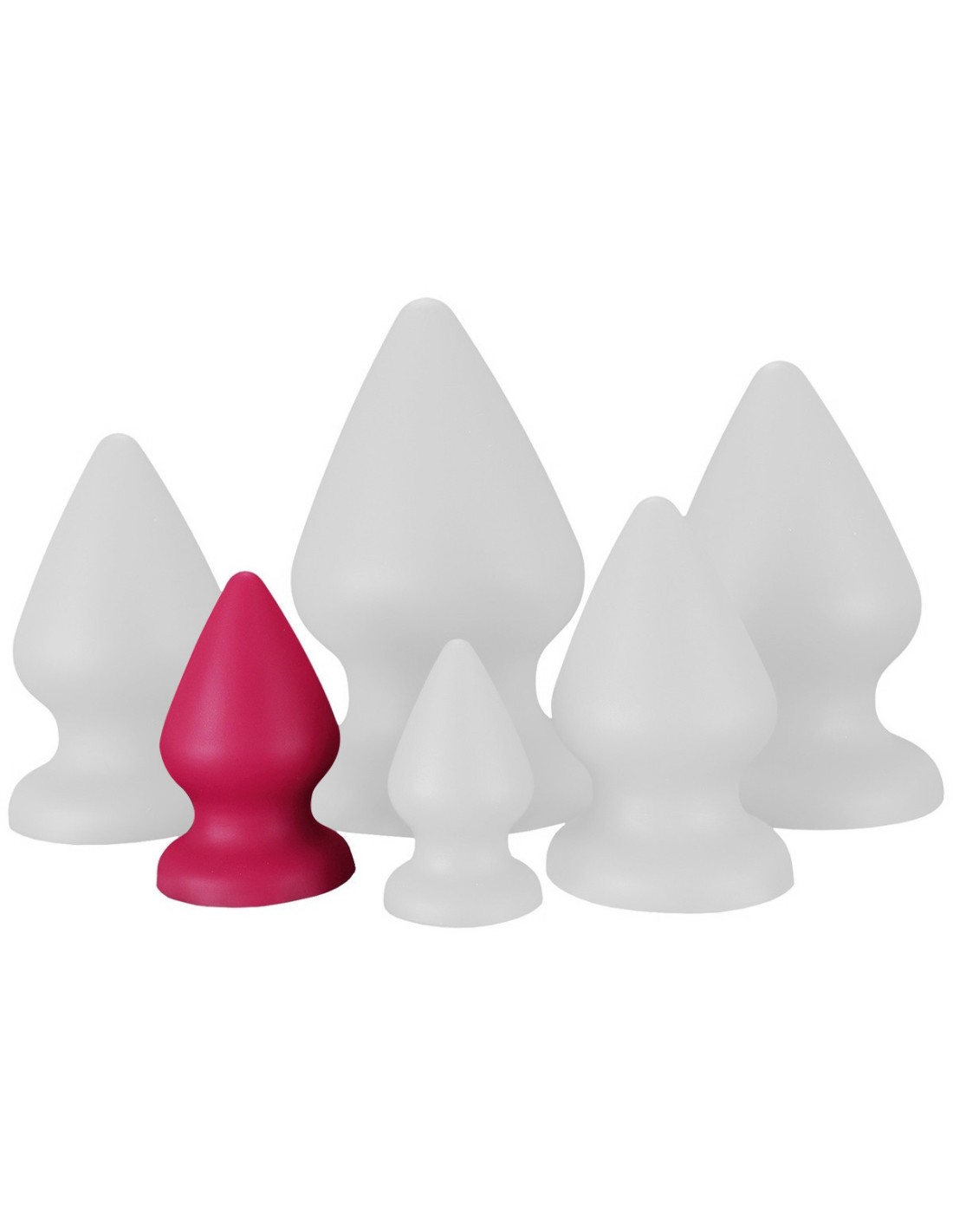 Plug conique, à la surface lisse. Longueur insérable 8 cm et largeur de 3 à 5 cm.En silicone, avec base ventouse.