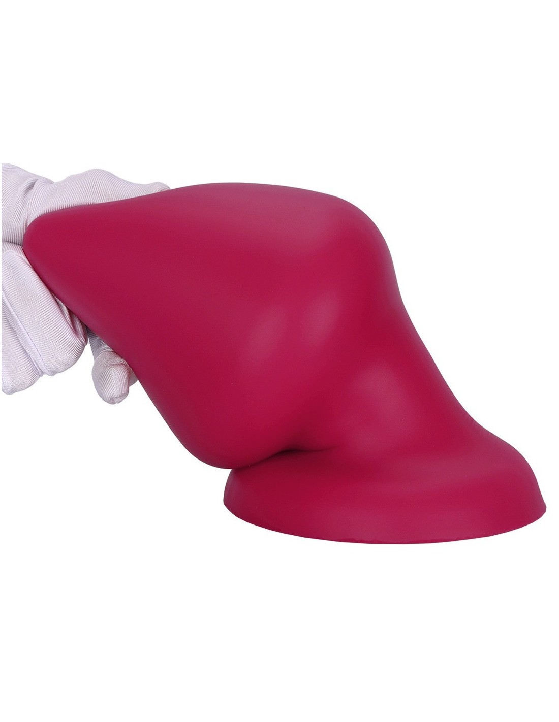 Plug conique, à la surface lisse. Longueur insérable de 6 cm et largeur de 2.5 à 4 cm. En silicone, avec base ventouse.
