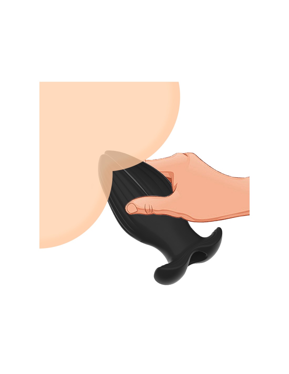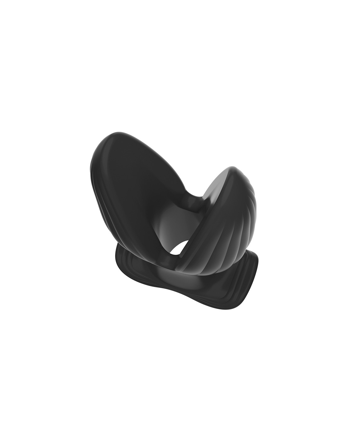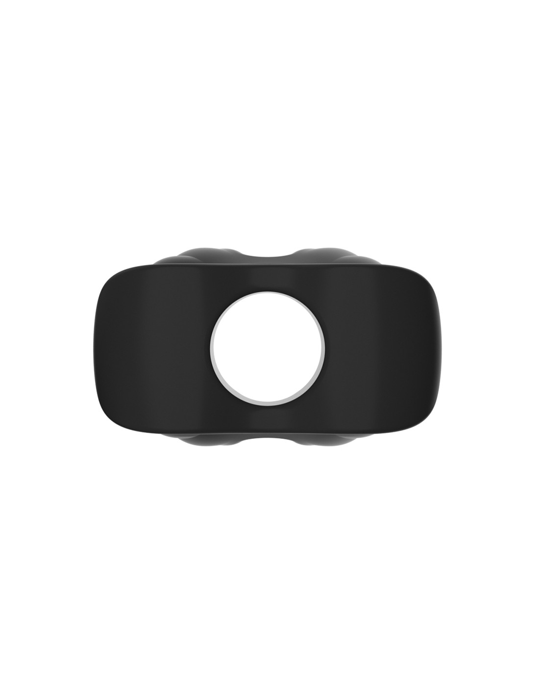 Accessoire avec un trou central et une forme qui s'écarte lors de l'insertion.Longueur insérable de 7.5 cm et largeur maximale de 5 cm.Trou de 15 mm de diamètre.En silicone.