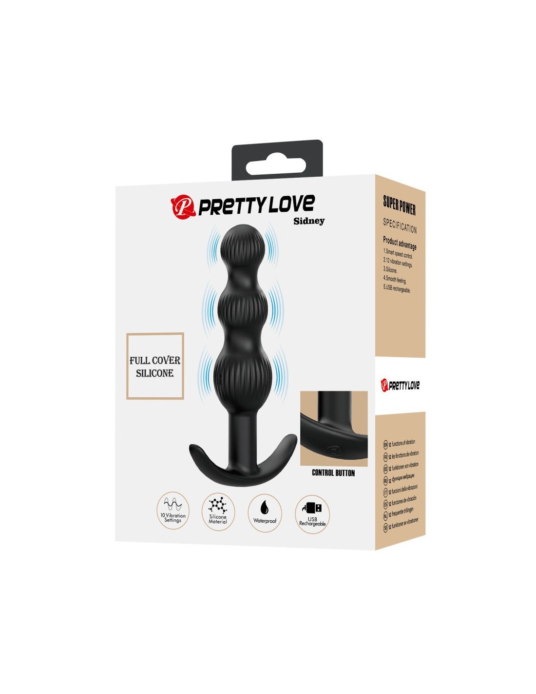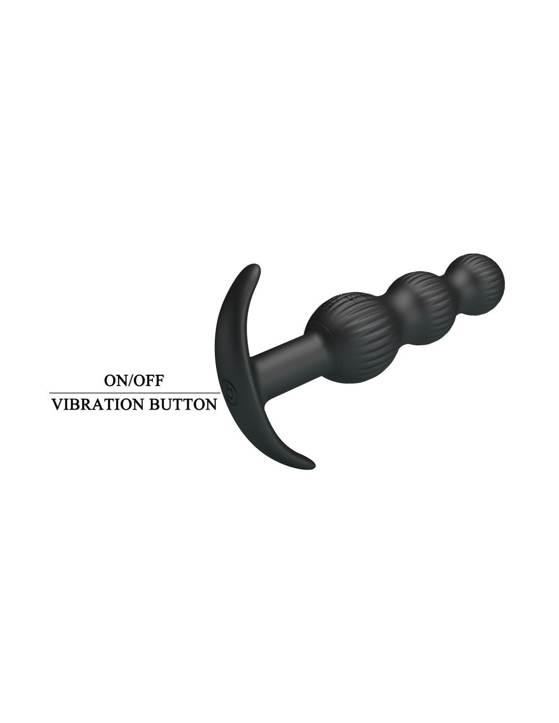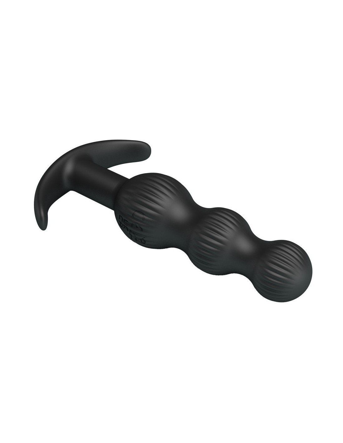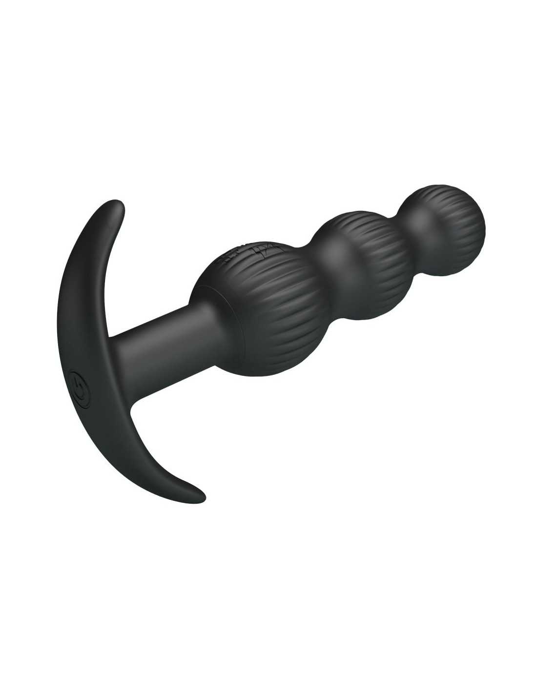 Pretty LovePlug de 3 boules de taille progressive.Longueur insérable de 10 cm et largeur de 2 à 2.7 cm. 10 modes de vibrations, rechargeable.En silicone, avec base large.
