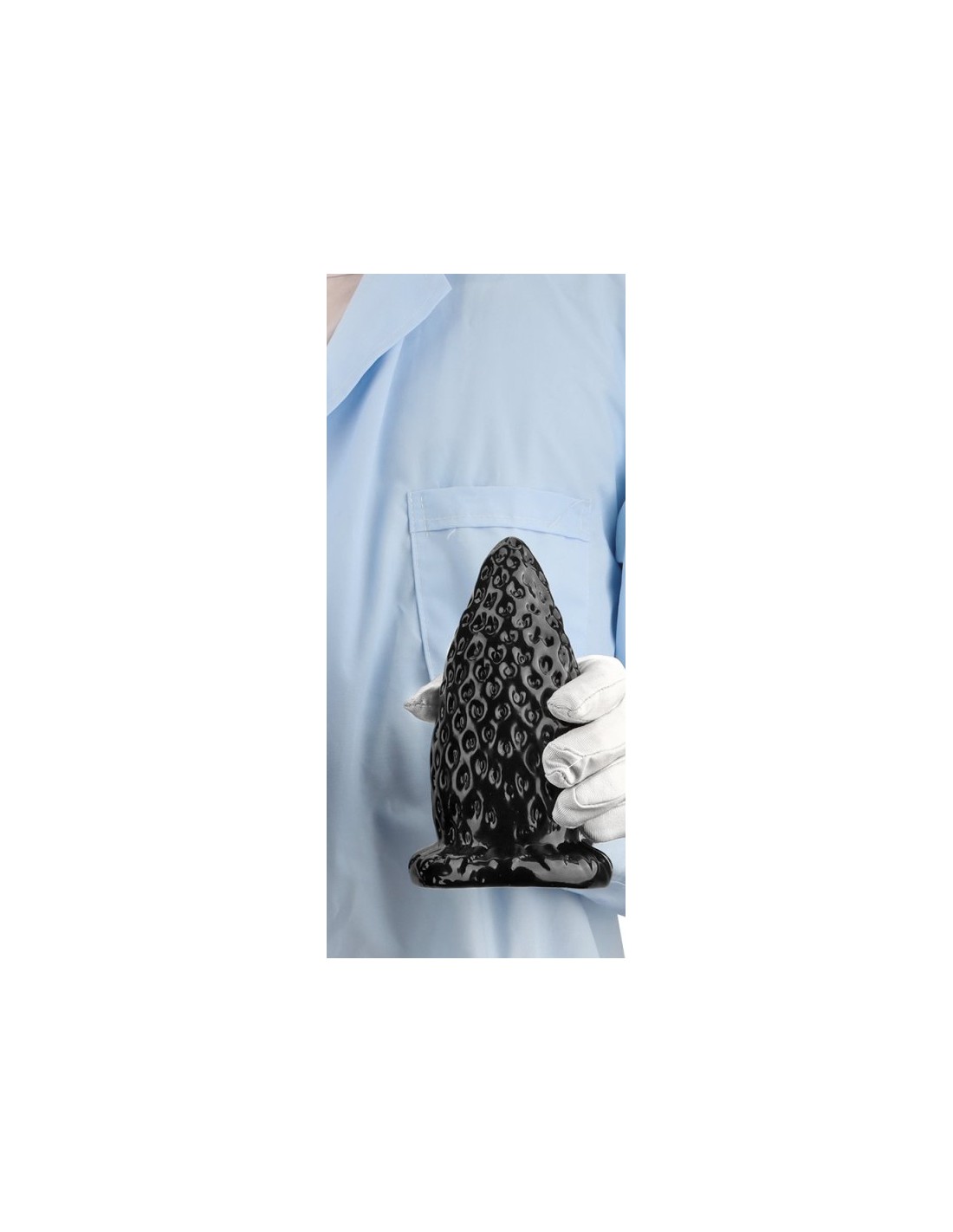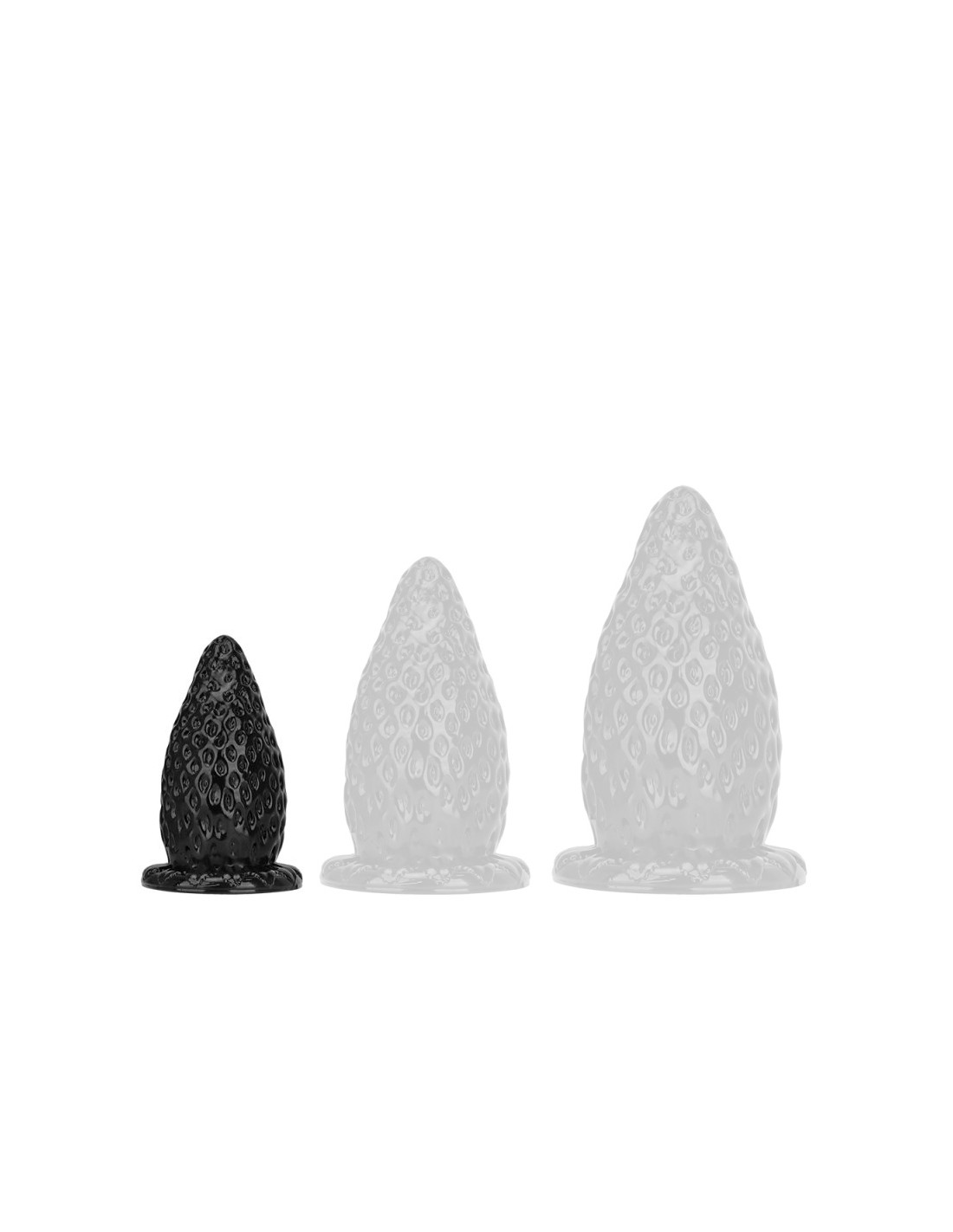 Plug en forme de fraise avec une longueur insérable de 13 cm et une largeur maximale de 6.8 cm.La surface est comme celle du fruit avec de légers trous stimulants.Avec une base ventouse.En PVC.