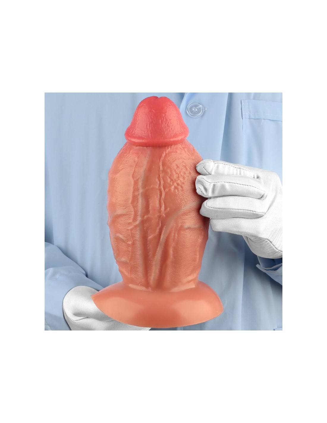 RealCockzPlug avec une forme volumineuse dont la largeur maximale atteint 10 cm.La longueur insérable est de 18 cm.Avec des contours réalistes et une base ventouse.En silicone.