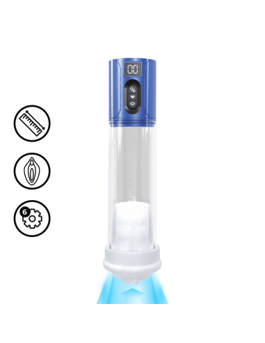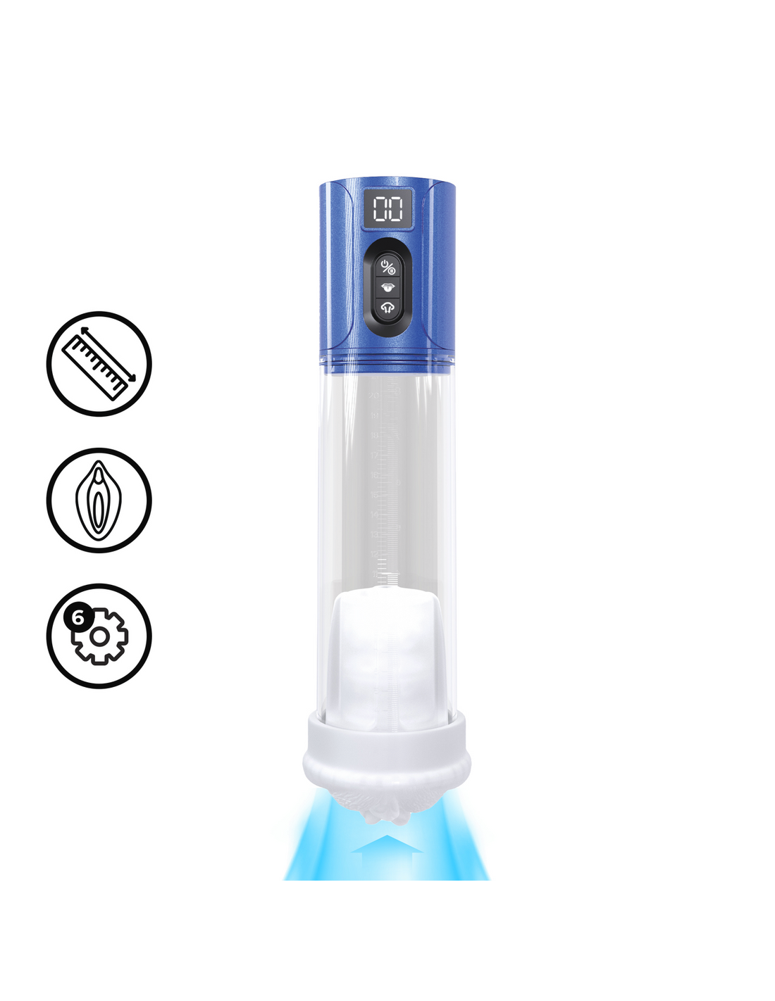 Cylindre transparent et gradué de 22 x 7 cm. Gaine supplémentaire avec une entrée vulve pour l'utiliser comme masturbateur.6 modes de succion.Recharge USB.
