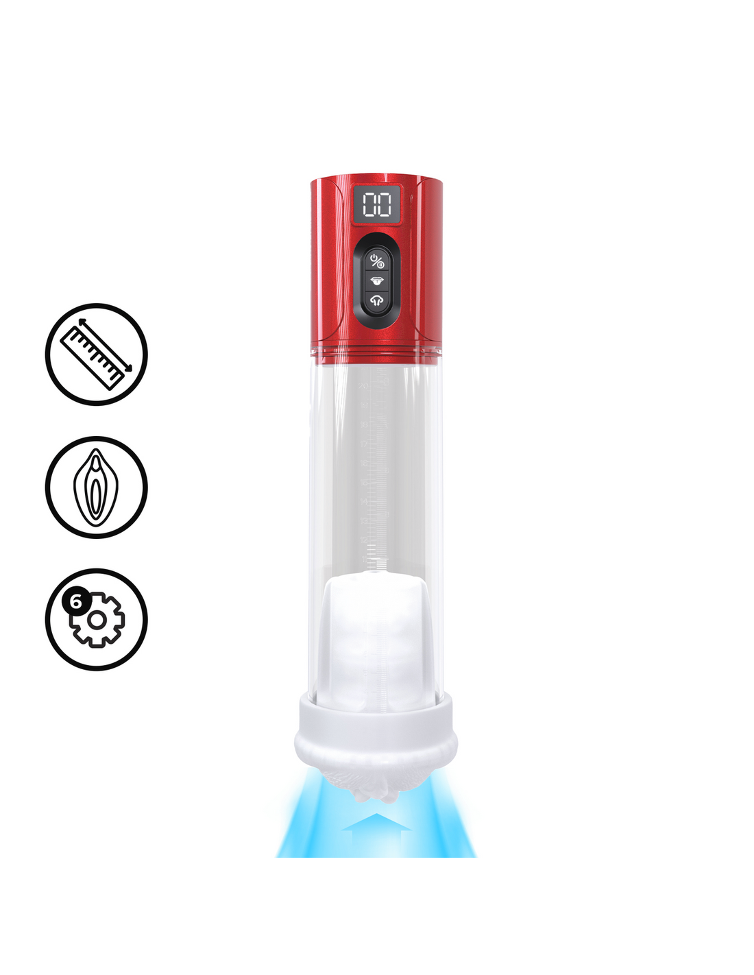 PumpedCylindre transparent et gradué avec une longueur de 22 cm et une largeur de 7 cm.Il fait masturbateur avec une entrée Vulve et 6 modes de succion.Recharge USB.
