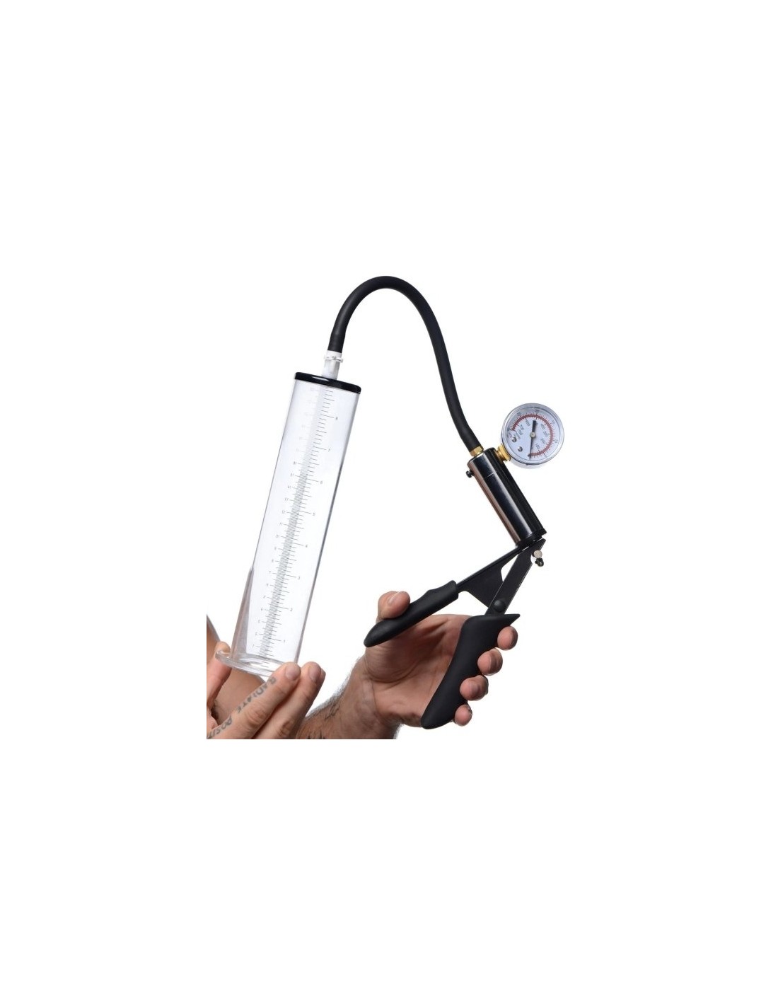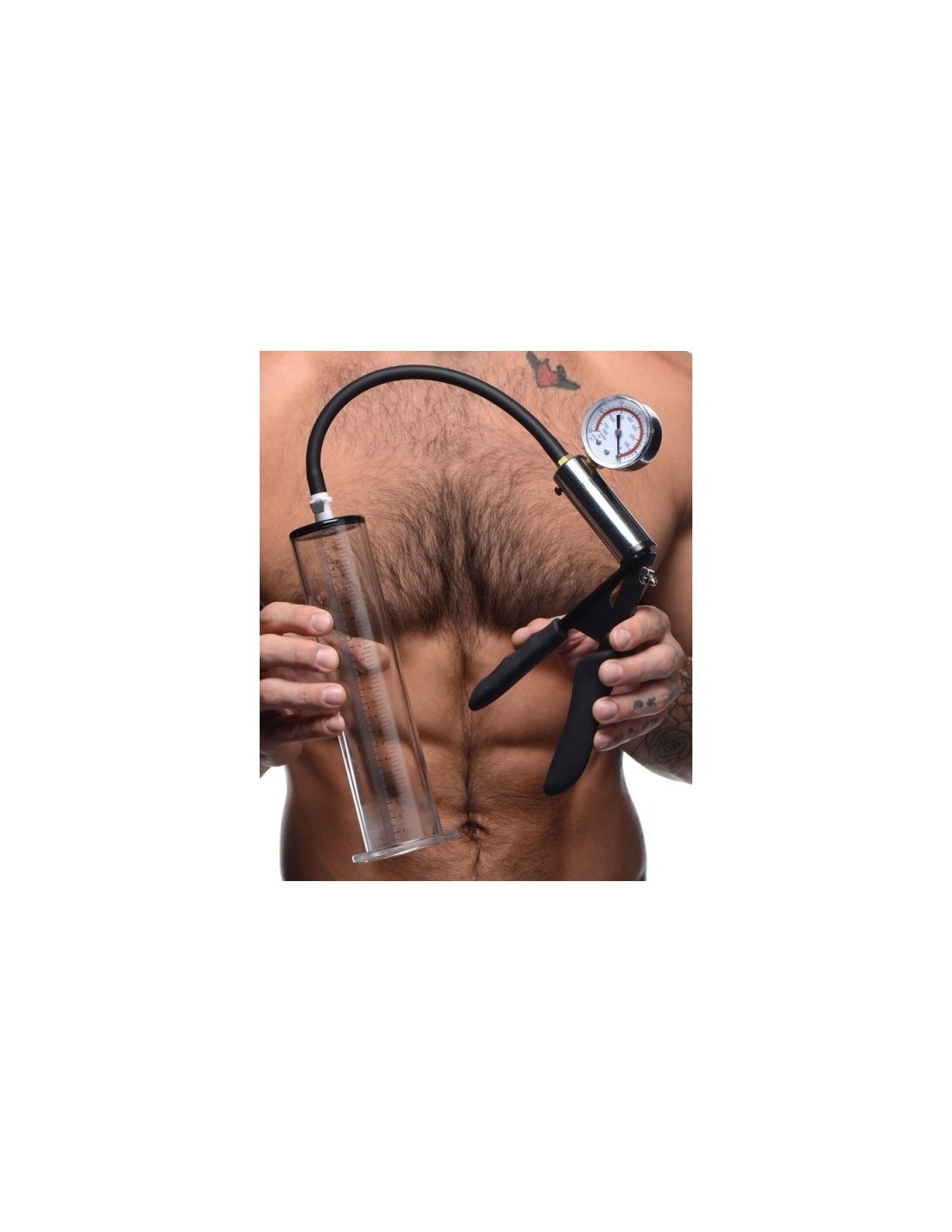 Cylindre transparent avec une longueur de 30 cm et une largeur de 6 cm.Avec graduation.Avec une poignée et manomètre.En plastique ABS et manchon en TPE.