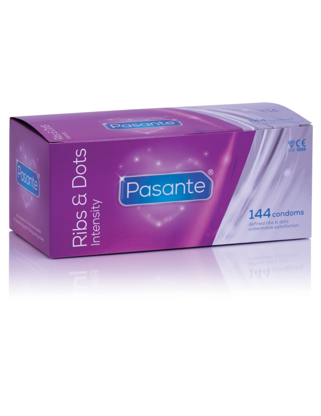 Ces préservatifs texturés de la marque Pasante sont conçus avec une surface à la fois perlée et nervurée. Ils donnent des sensations encore plus importantes lors de l'acte sexuel.Ils sont fabriqués en latex avec une taille standard et une largeur nominale de 52mm