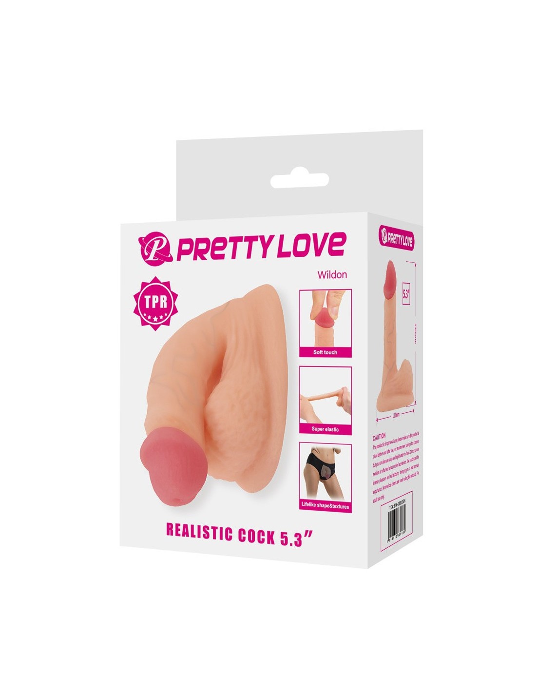 Pretty LoveProthèse de pénis souple. Largeur totale du dispositif de 6.5 cm, longueur du pénis de 10 cm et largeur de 3 cm. Matière TPR.
