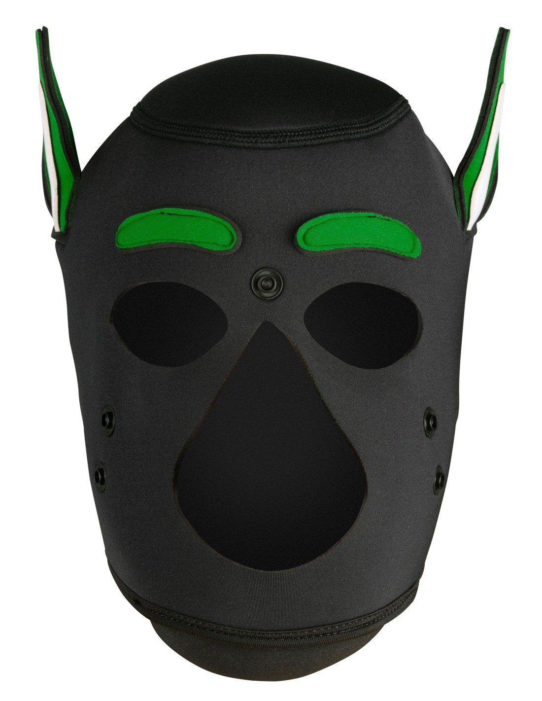 Kinky PuppyMuseau amovible et Oreilles articulées.Avec les traits d'un husky.Hauteur de 21 cm et Tour de tête de 60 cm.En néoprène.