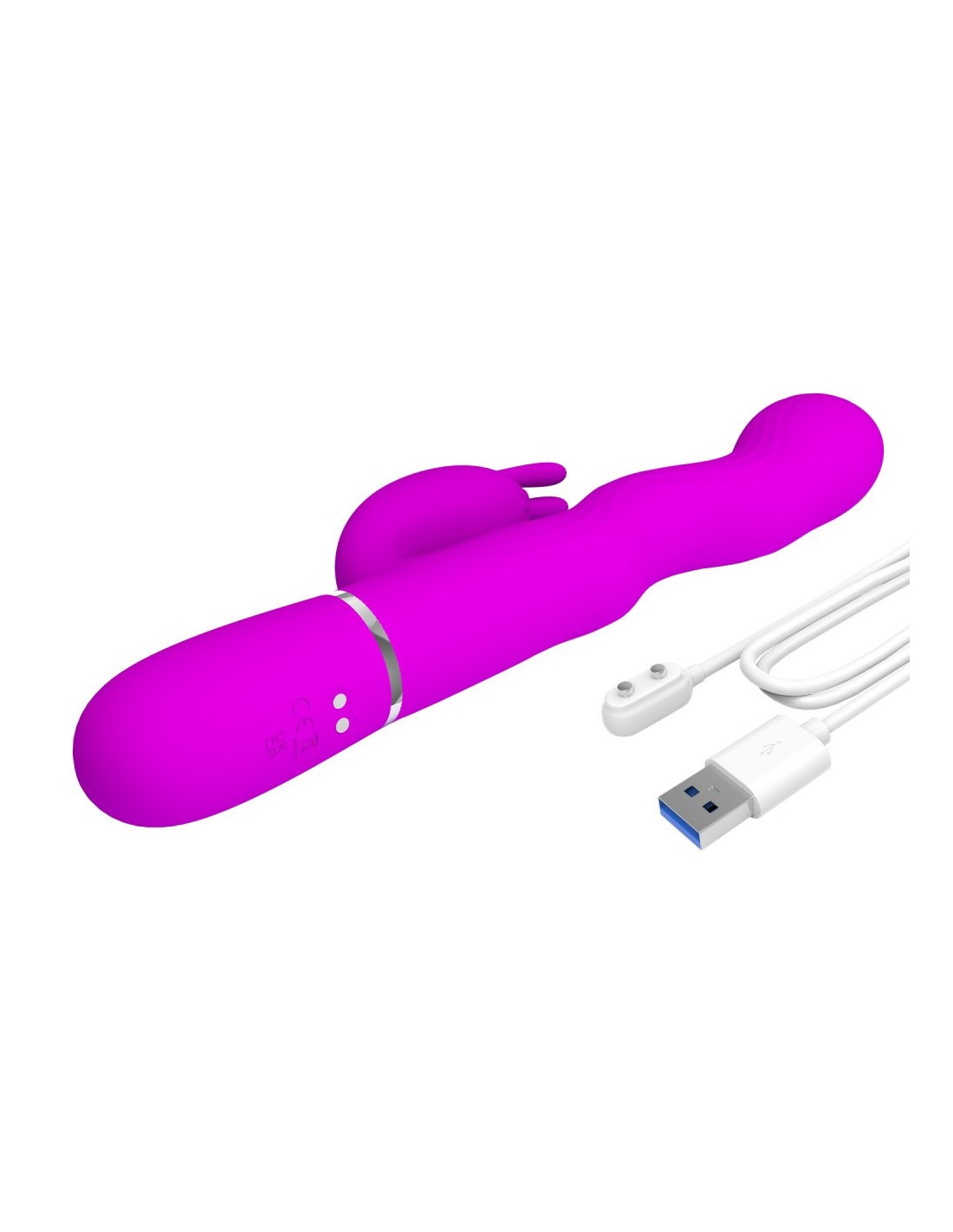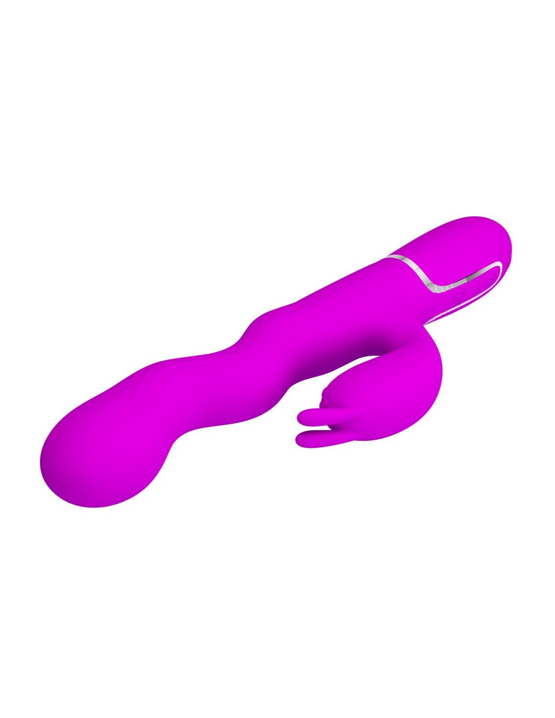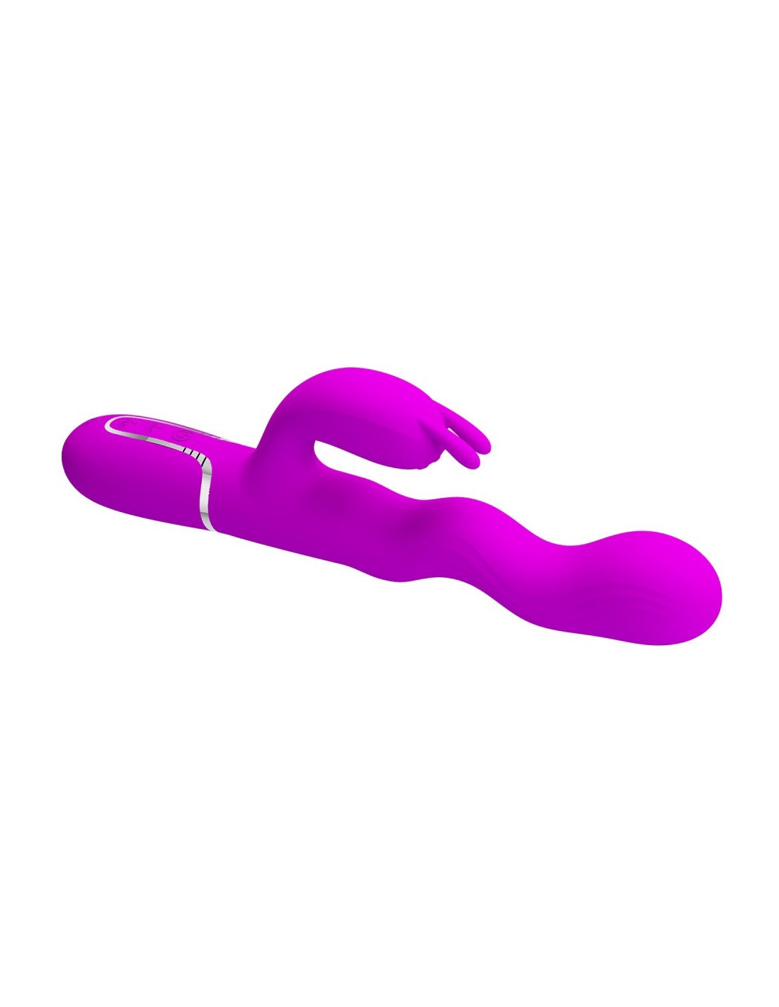 Pretty LoveVibro rabbit avec 7 vibrations et 4 mouvements de vagues.Longueur insérable de 14 cm et largeur de 2.7 à 3.7 cm.En silicone, rechargeable.