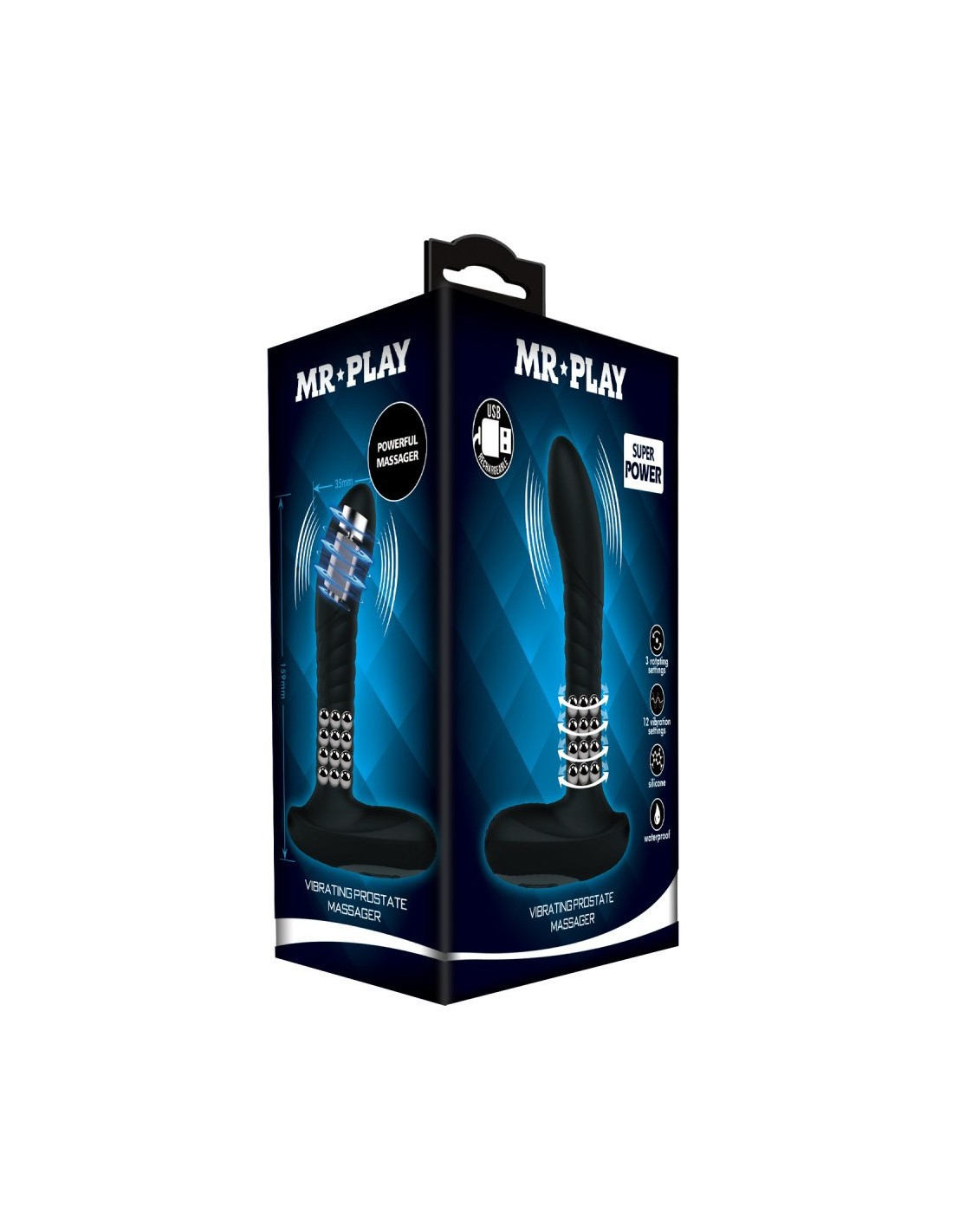 Caractéristiques :Dimensions totales 16 x 10.5 x 4 cmLongueur insérable 13 cmLargeur 3.5 cm12 modes de vibrations3 modes pour les billes rotativesBatterie Lithium - Recharge USB.Précautions d'utilisation :le nettoyer avant et après chaque utilisationl'utiliser uniquement avec un lubrifiant à base d'eaule conserver dans un endroit propre, sec et à l'abri de la chaleur, sans contact avec un autre objet.