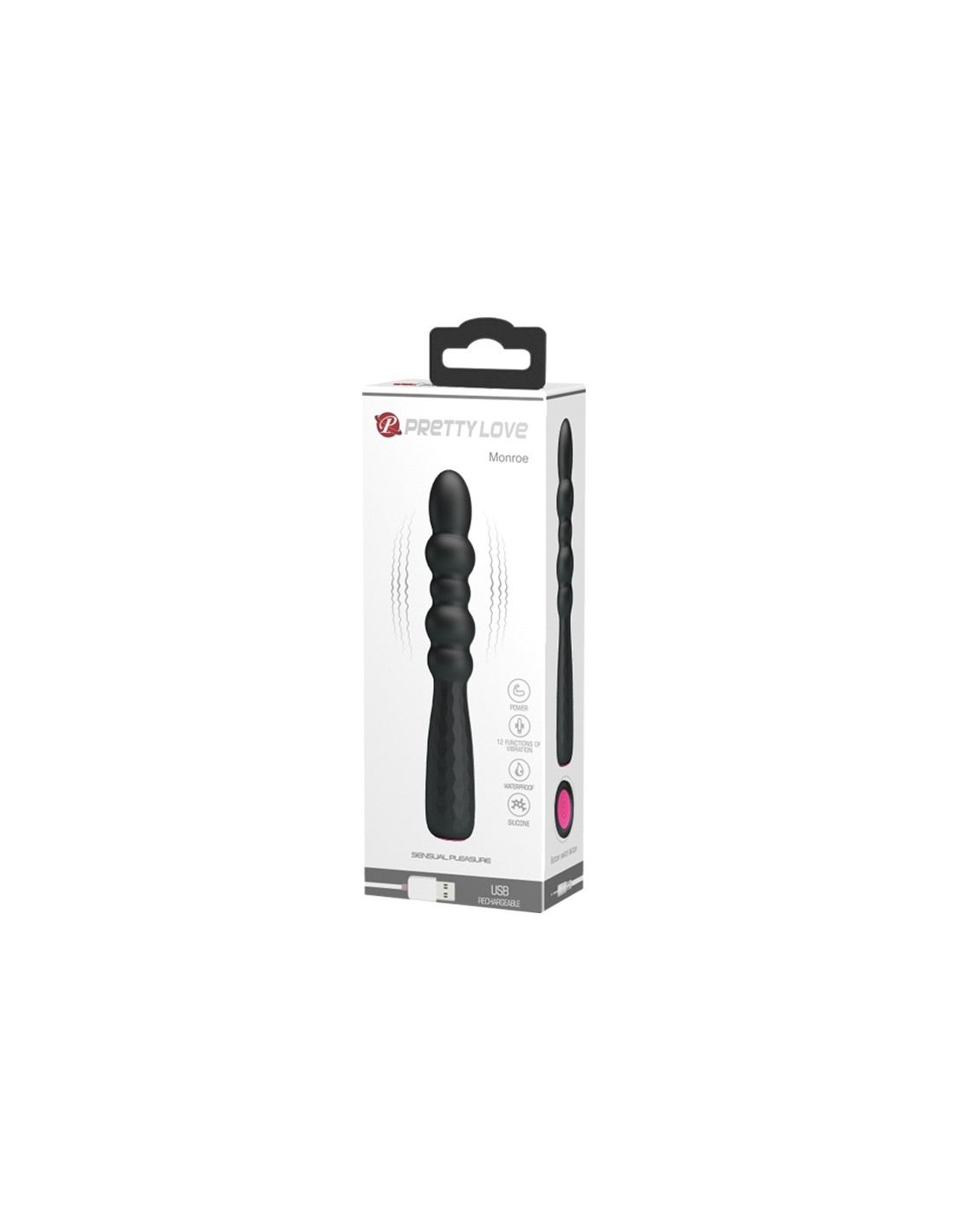 Ce stimulateur de prostate appelé Monroe est un sextoy de la marque Pretty Love.Il est composé d'une longueur insérable de 11cm et d'une largeur de 2.5cm. Sa forme est entièrement flexible. Il dispose de 12 rythmes de vibrations. Fabriqué en silicone.Recharge USB