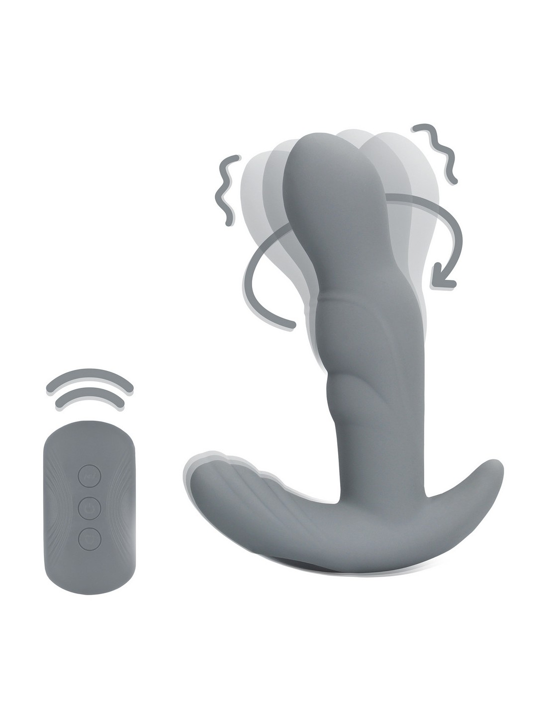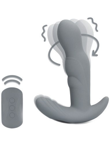 Stimulateur prostatique avec 10 modes de vibrations et de rotations.Longueur insérable de 11.5 cm et largeur de 2.6 à 3.4 cm.En silicone, étanche et rechargeable.