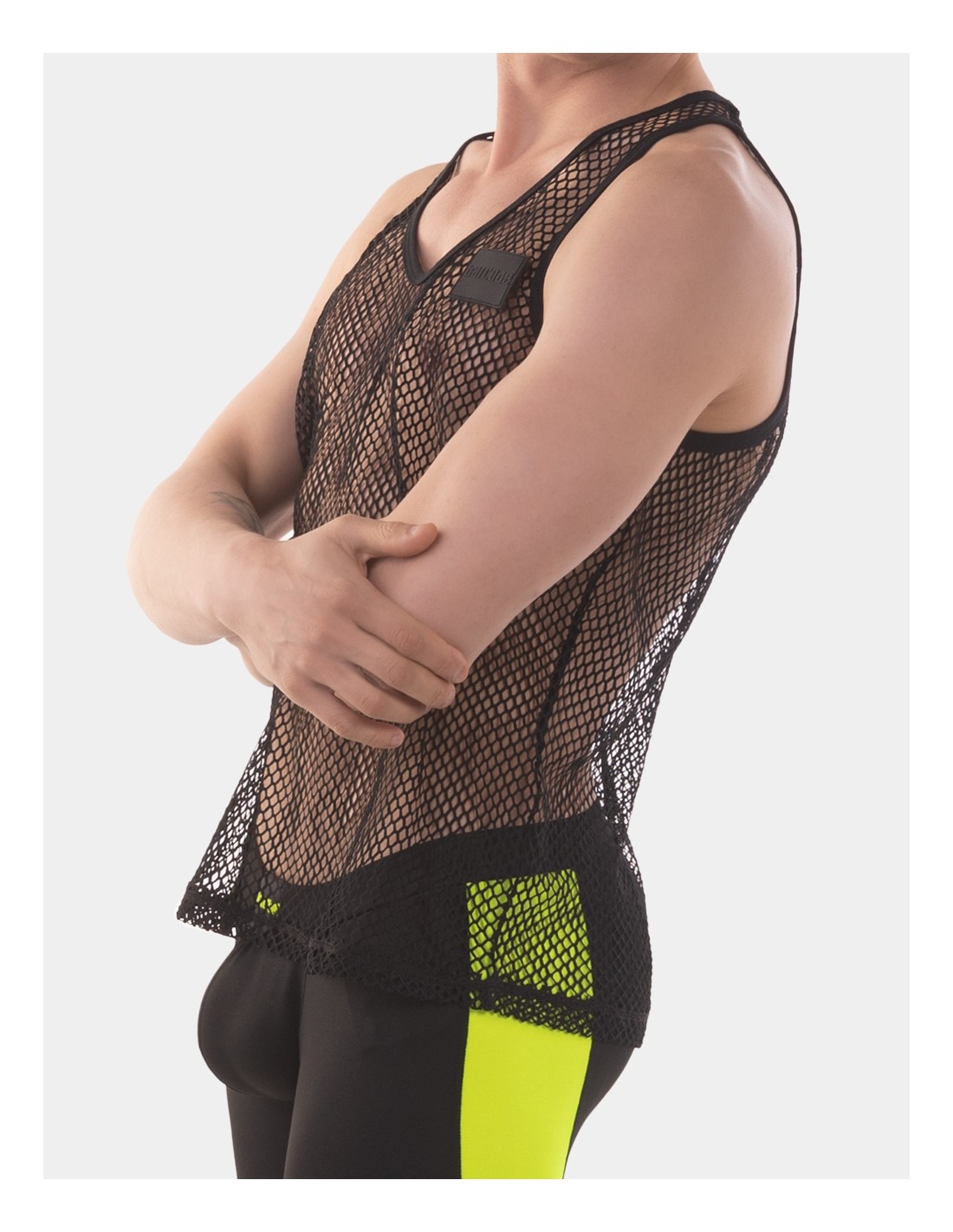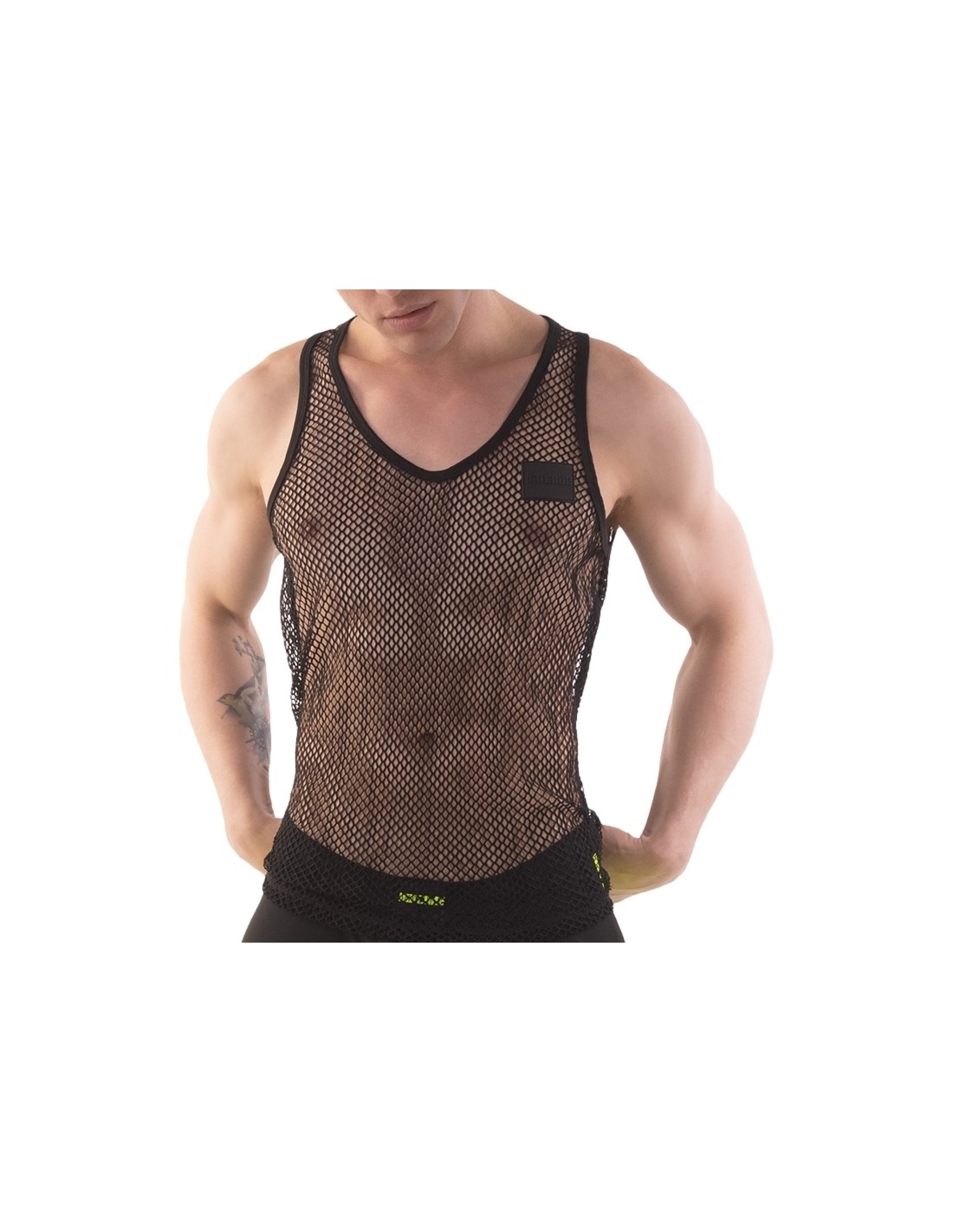 T-shirt Sexy T-shirt sexy NET MEN Noir Svenjoyment 41274 29,40 € Tissu mesh.Col et bords de manches en tissu imitation vinyle. Composition : 100% polyester. Boxer non inclus Ajouter au panier