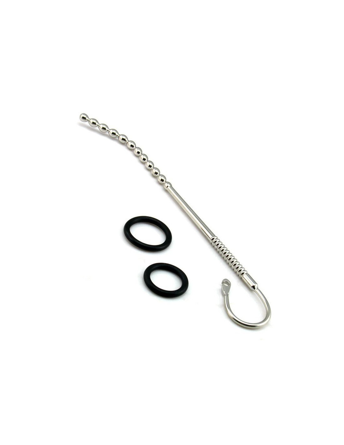 Longueur insérable de 24 cm et diamètre de 7 mm.Avec une surface texturée (perlée, lisse et nervurée).Avec deux anneaux de 24 mm et 30 mm.En métal inox.