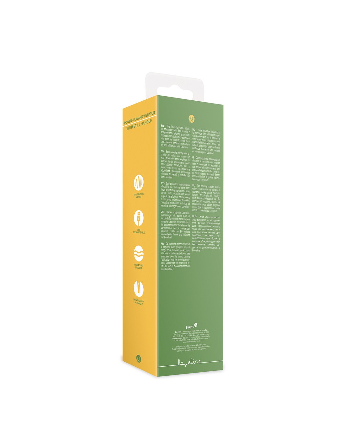 Conseils d'utilisation :le nettoyer avant et aprèsl'utiliser, uniquement, avec du lubrifiant à base d'eau le conserver dans un endroit sec et propre, à l'abri de la lumière et de la chaleur, sans contact avec d'autres objetsCaractéristiques :longueur totale 20 cmdiamètre de la tête 45 mmrechargeable - batterie lithium40 modes de vibrationsétancheautonomie 60 mintemps de charge 180 min
